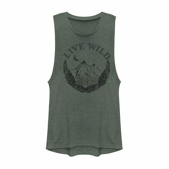 Express your adventurous nature while wearing this juniors’ “live wild” mountain and feathers muscle tee.