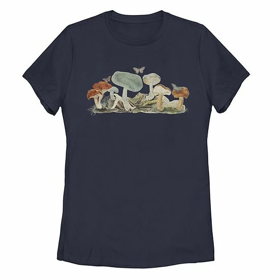 This beautiful Juniors’ Mushrooms And Butterfly Portrait Graphic Tee is a must add to your graphic tee collection. In navy.