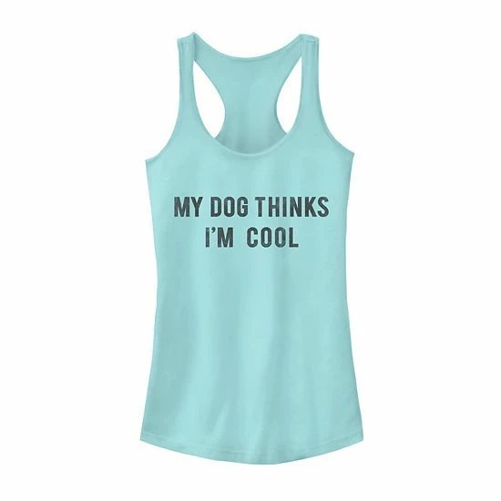 Trendy style abounds on this Juniors’ My Dog Thinks I’m Cool Graphic Tank.
