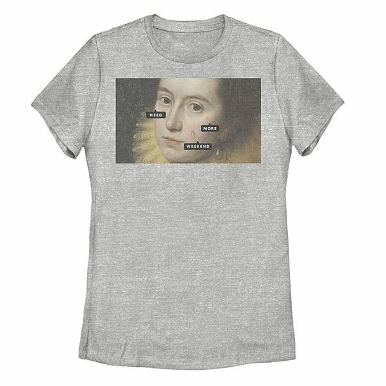 Trendy style abounds on this Juniors’ Need More Weekend Classical Portrait Graphic Tee.
