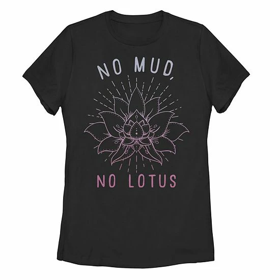 Trendy style abounds on this Juniors’ No Mud No Lotus Gradient Graphic Tee.