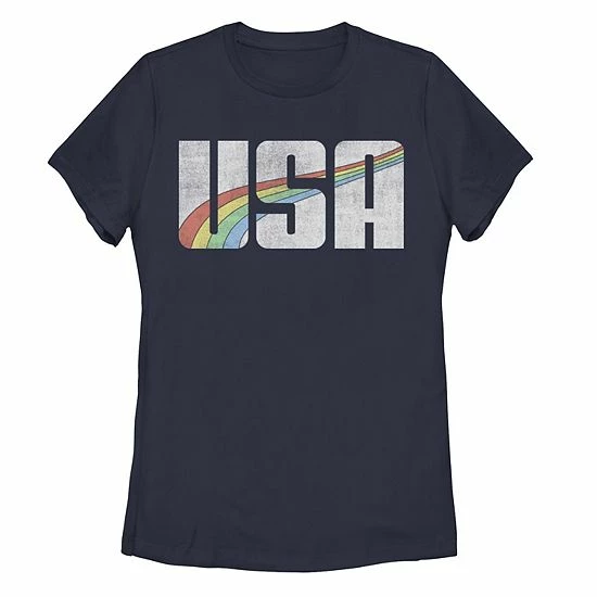 Sport a fun, patriotic look in this colorful rainbow bridge USA tee.