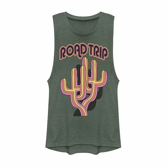 Help her beat the heat while wearing this juniors’ “road trip” colorful cacti muscle tee.