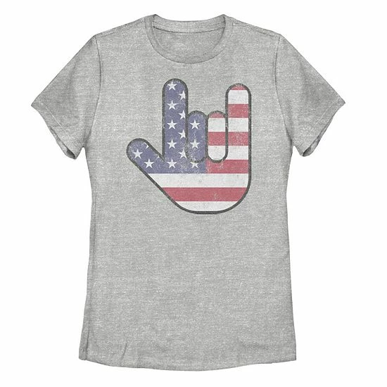 Amp up your patriotic look with this juniors’ rockin’ American flag tee.
