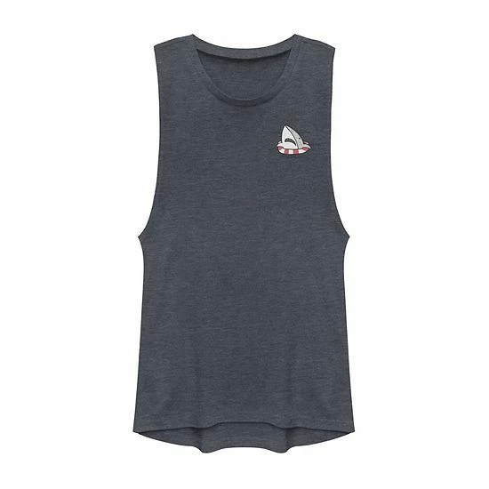 Trendy style abounds on this Juniors’ Shark With Floatie Ring Pocket Print Graphic Muscle Tee.