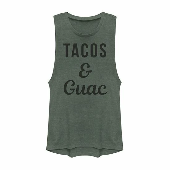 A better basic. This juniors’ “tacos & guac” text muscle tee will put the finishing touch on any weekend outfit.
