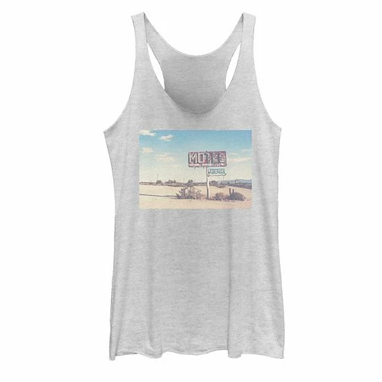 Celebrate the thrill of the open road in this juniors’ retro-inspired desert motel graphic tank top.