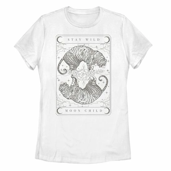 Stay wild and free in this cool juniors’ Tiger Moon Child graphic tee.