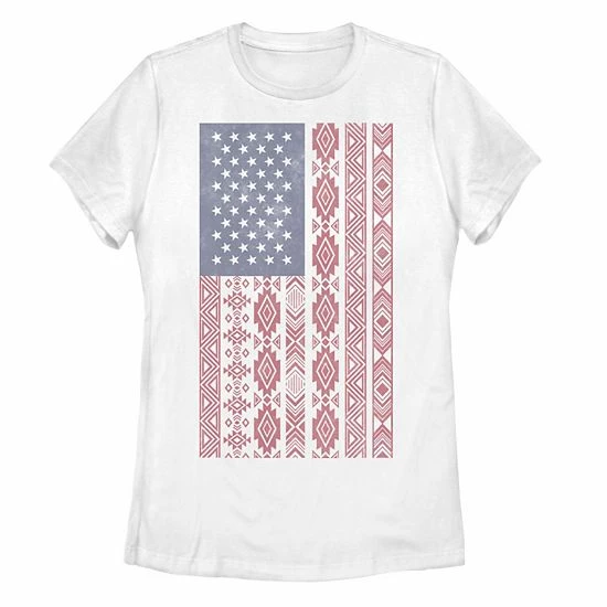 Salute the Red, White, and Blue in this juniors’ American flag graphic tee.