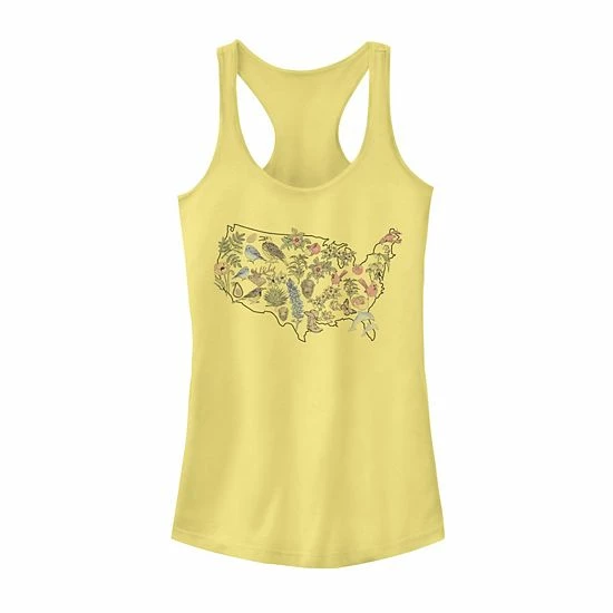 Featuring state birds and flower icons laid over a map of the USA, this juniors’ racerback tank top is the perfect addition to your casual wardrobe.