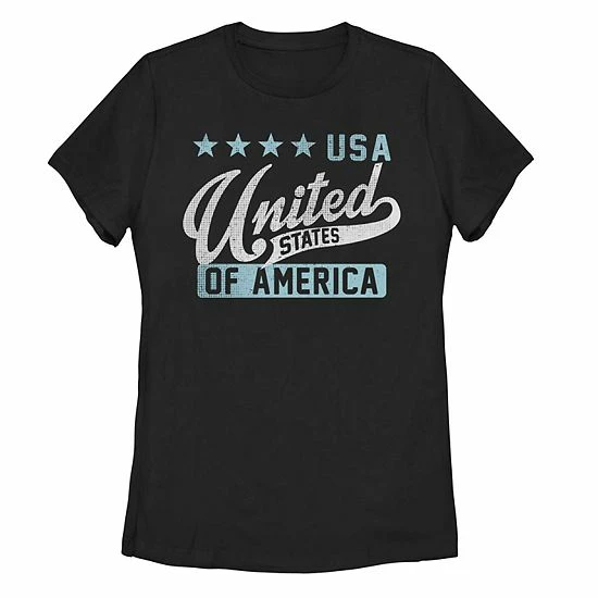 Display your patriotic pride wearing this juniors’ USA graphic tee.