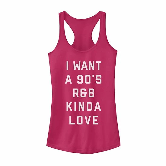This amazing Juniors’ Valentine’s Day “I Want A 90’s R&B Kinda Love” Tank Top is a must have for your little R&B fan. In raspberry.
