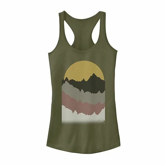 Trendy style abounds on this Juniors’ Vintage Sunset Over Mountains Sketch Graphic Tank.