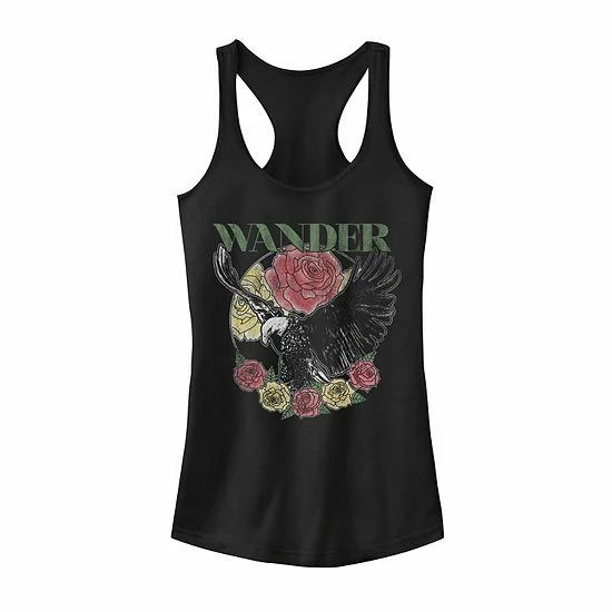 Any free spirit will enjoy the freedom offered by this awesome Juniors’ Wander Floral Eagle Tank Top. In black.