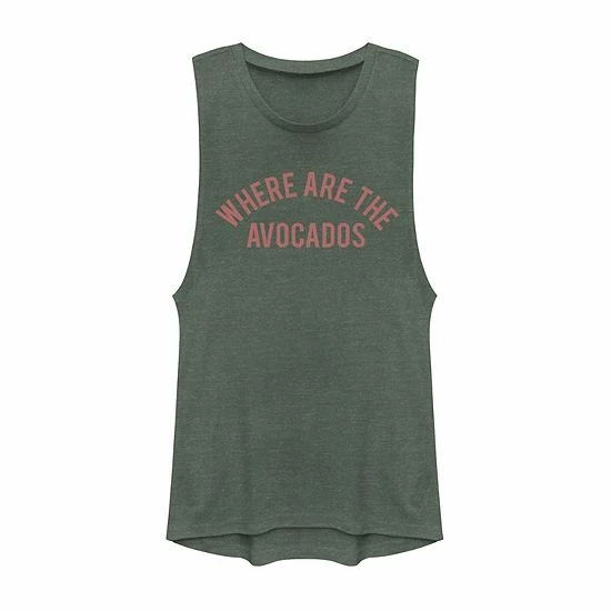 Trendy style abounds on this Juniors’ Where Are The Avocados Graphic Muscle Tee.