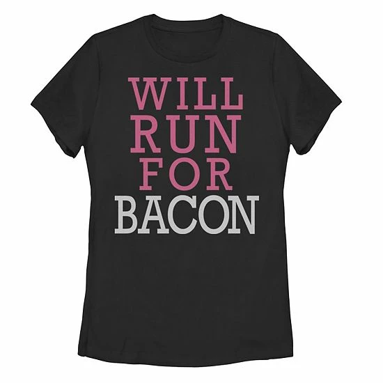 Even the most dedicated runner needs some delicious crispy bacon sometimes. Satisfy your craving with this awesome Juniors’ Will Run For Bacon Graphic Tee. In black.
