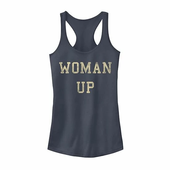 Channel your inner girl power with this awesome empowering “Woman Up” tank top. In indigo.