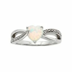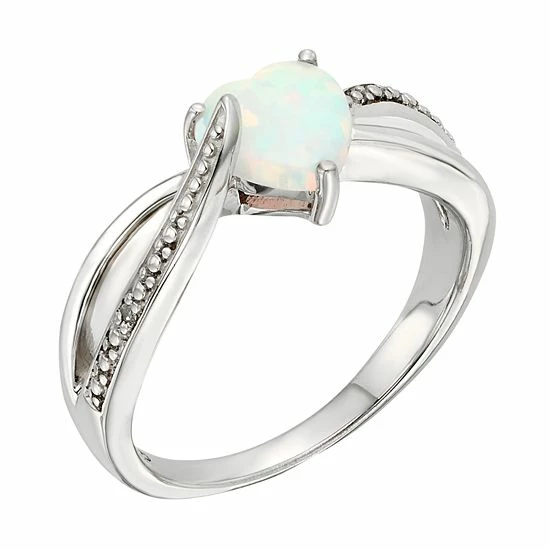 Adorned with a heart-cut, lab-created opal set in a bypass band, this ring radiates romance. Diamond accents complete this beautiful sterling silver ring.