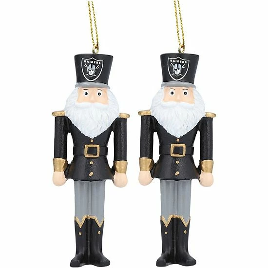 Add some festive holiday spirit to your home decor this season with a pair of Santa Nutcracker ornaments. Each jolly Las Vegas Raiders accessory features painted details with decal graphics of your favorite team! Ready to hang, these identical ornaments will allow your fandom to shine through the holiday season!