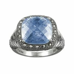 Featuring lab-created blue quartz and marcasite stones, this sterling silver frame ring offers eye-catching beauty.