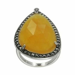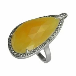 Lovely genuine yellow jade gives this teardrop ring eye-catching style that’s sure to get noticed.