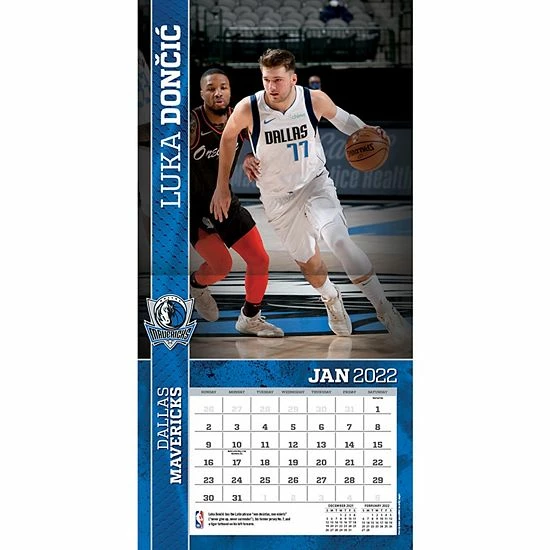 Make Luka Doncic part of your daily routine with this Dallas Mavericks 2022 Player Wall Calendar. It features full-color photos that bring action shots of Luka Doncic to your home or office. The months also run from September 2021 to December 2022, so you can start tracking dates and Dallas Mavericks games right away.