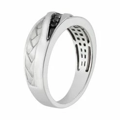 Decorated with five round-cut diamonds and a braided texture, this 10k white gold ring adds a handsome touch to your look.
