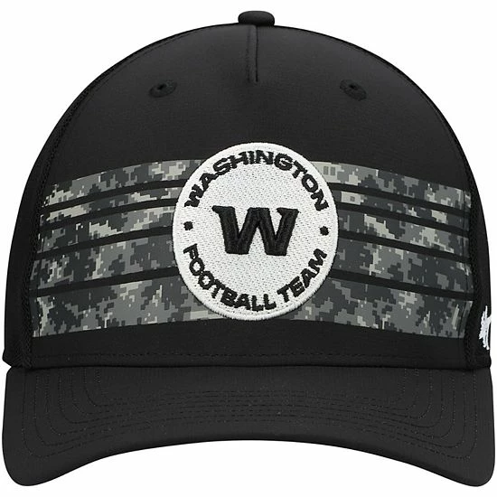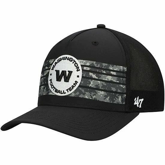 Go dark with your Washington Football Team fandom when you wear this Gaven MVP Trucker hat from ’47. Its monochromatic design features a raised Washington Football Team logo in neutral embroidery and printed digital camo stripes. Breathable mesh panels also provide a breezy feel, while the snapback closure easily adjusts for the ideal fit.