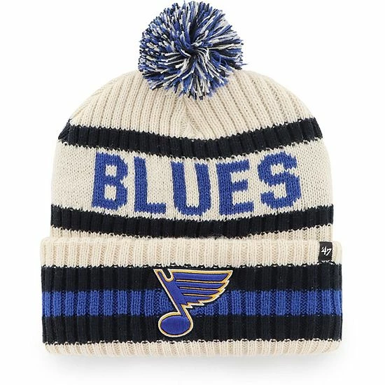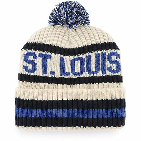 The undeniable St. Louis Blues graphics on this ’47 Bering cuffed knit hat will allow your enthusiasm to stand out anywhere you wear it. Decorated with a pom on top for that classic winter look, this cozy cap will become a mainstay in your selection of St. Louis Blues gear.