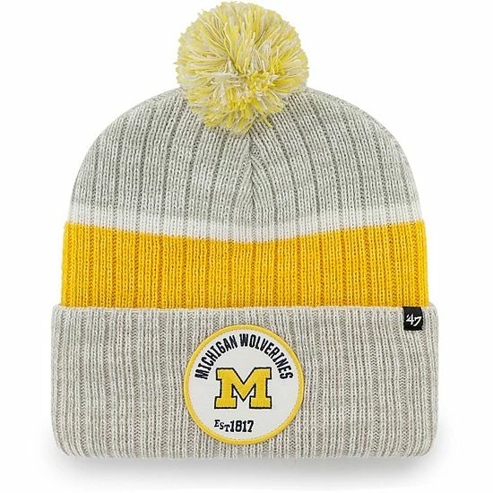 Keep your head warm in cooler temperatures in striking Michigan Wolverines fashion with this Cuffed knit hat with pom from ’47. It features a simple and sweet woven design with a fun pom on top and a bold embroidered Michigan Wolverines graphic on the cuff. Add the perfect finishing touch to your outfit on a cooler day and take on the day with confidence.