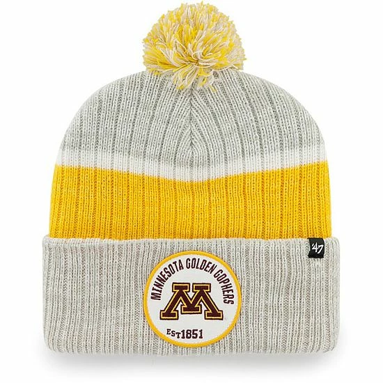 Keep your head warm in cooler temperatures in striking Minnesota Golden Gophers fashion with this Cuffed knit hat with pom from ’47. It features a simple and sweet woven design with a fun pom on top and a bold embroidered Minnesota Golden Gophers graphic on the cuff. Add the perfect finishing touch to your outfit on a cooler day and take on the day with confidence.