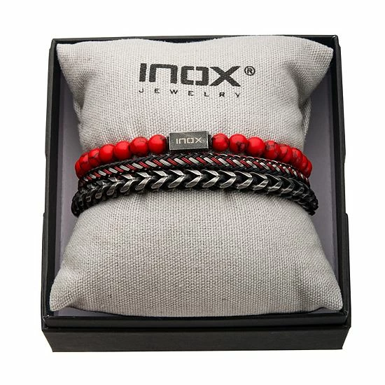 Create an edgy and casual look with this men’s stackable bracelet set.
