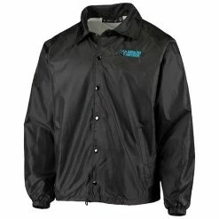 You’ll feel ready to take on wet weather for Carolina Panthers games with this Coaches Classic windbreaker in your collection of gear. In addition to providing protection against the rain and wind, it features unmistakable Carolina Panthers graphics. There’s no questioning your commitment as a fan when you wear this raglan full-snap jacket.