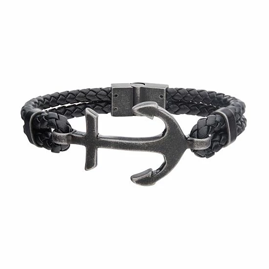 Featuring braided leather bands with a steel anchor toggle clasp, this bracelet is both bold and stylish.