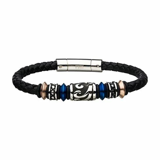 This men’s stainless steel and leather beaded bracelet set adds bold and masculine style to his favorite looks.