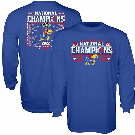 With every rebound, free-throw, and three-pointer, the Kansas Jayhawks proved they had the skill and determination to win the tournament! Celebrate the 2022 NCAA Men’s Basketball National Champions with this Bracket Long Sleeve T-Shirt from Blue 84. The spirited graphics commemorate this exciting moment in Kansas Jayhawks history and ensure you always remember the thrill of seeing your team cut down the net.