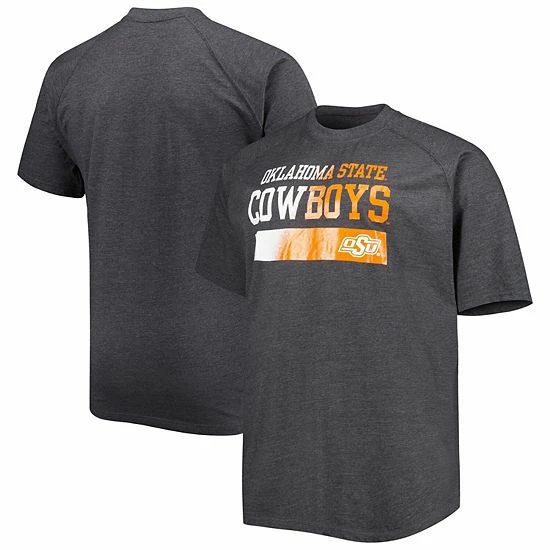 When gearing up for Oklahoma State Cowboys game day, be sure to make this eye-catching T-shirt part of your outfit. It features distressed Oklahoma State Cowboys graphics across the front, giving it a vintage look that’ll make this tee a go-to whenever you’re getting ready to cheer on your favorite players. The raglan sleeves allow you to enjoy a flexible fit that keeps you comfortable throughout every wear.