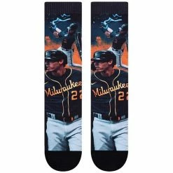 Rock some cool socks on the next Milwaukee Brewers game day with these Christian Yelich Voltage Player Crew Socks! These feature the image of your favorite player on the Milwaukee Brewers and are just the accessory you want to pair with the rest of your ballpark look.