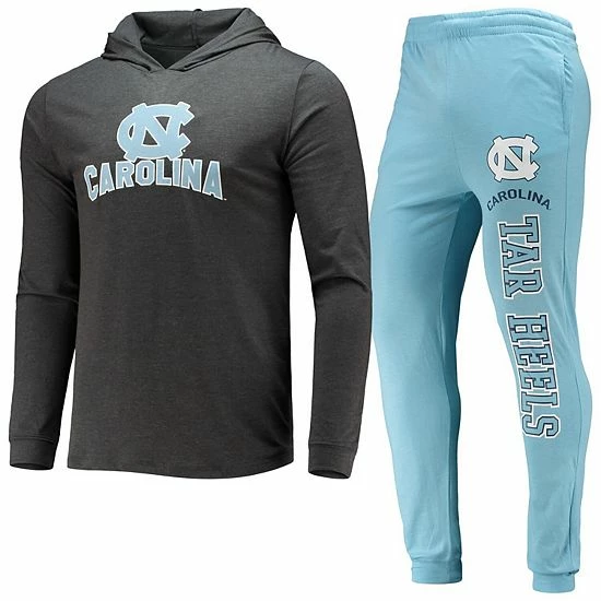 When cooler temperatures hit, kick back while you stay warm in this North Carolina Tar Heels Meter Hoodie T-shirt and jogger pants set. It features the official North Carolina Tar Heels logo printed above the team name on both pieces. An elastic waistband also provides a flexible fit for added comfort.