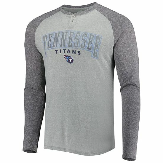 Cheer your team to victory in style with this Tennessee Titans Ledger Knit Raglan Henley T-shirt from Concepts Sport. The bold graphics make it clear who you ride with on Sundays. The contrasting raglan sleeves offer more maneuverability when celebrating a Tennessee Titans touchdown.