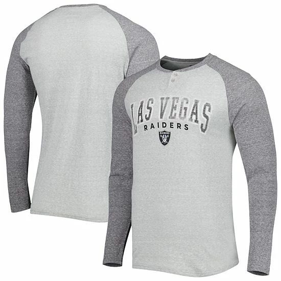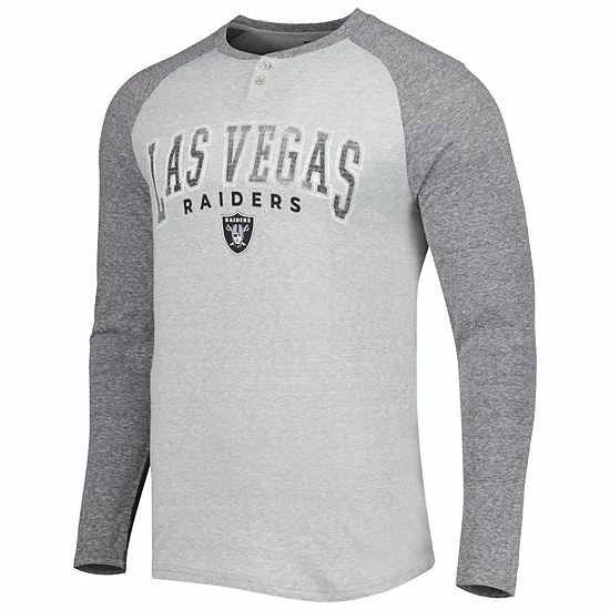 Cheer your team to victory in style with this Las Vegas Raiders Ledger Raglan Henley T-shirt from Concepts Sport. The bold graphics make it clear who you ride with on Sundays. The contrasting raglan sleeves offer more maneuverability when celebrating a Las Vegas Raiders touchdown.