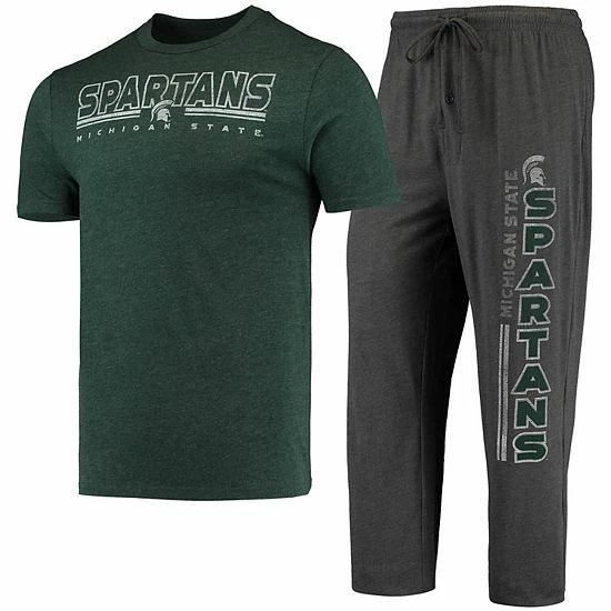 Hit the hay comfortably in this Michigan State Spartans Meter sleep set by Concepts Sport. It includes a T-shirt and pants, both featuring distressed Michigan State Spartans graphics for a vintage touch, and cozy dual-blend material that ensures a good night’s rest. Plus, the adjustable waistband lets you customize the fit to your liking so that you can drift off to sleep peacefully.