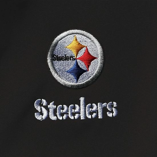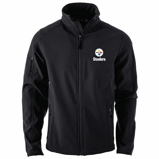 Own the weather on game day just like the Pittsburgh Steelers dominate their opponents. You’ll stay warm and mobile in this stretchy Sonoma Softshell full-zip jacket designed to resist water and wind. Also, the Pittsburgh Steelers graphics exhibit which sideline you support in any conditions.