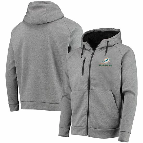 On chilly days, take to the streets in this Miami Dolphins Shag full-zip hoodie by Dunbrooke for a full-on fan look. Crafted from soft tri-blend material, this jacket features sherpa lining for an extra cozy feel, and raglan sleeves for a natural range of motion. Plus, the bold Miami Dolphins embroidery subtly flexes your team spirit in a fresh design.