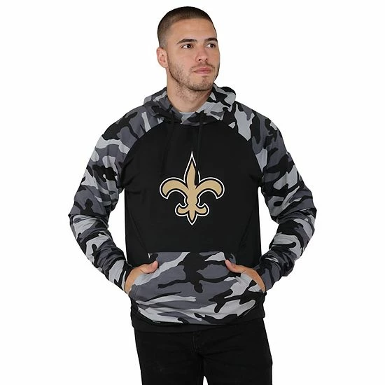 Don’t hide your New Orleans Saints fandom. Show it off with this Camo hoodie from FOCO. Featuring a bold New Orleans Saints logo and comfortable raglan sleeves, this pullover hoodie is a great grab when you need some sleek game day attire.