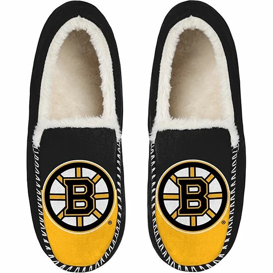 Slip your feet into some cozy Boston Bruins spirit by grabbing these FOCO Colorblock mocassin slippers. Ideal for lounging at home, the slip-on style and ultra-soft lining ensure a comfy fit. Plus, the striking Boston Bruins graphics and vibrant colorway show off your pride with every step you take.