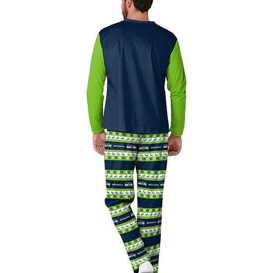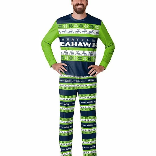 Kick off the holiday season in this festive Seattle Seahawks Ugly pajama set from FOCO. Its playful design features a whimsical pattern with authentic Seattle Seahawks graphics and colors all over. The adjustable waistband will also provide a personalized fit for the most comfortable feel.