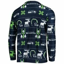 Get in the spirit this season with this set of Seattle Seahawks Ugly pajamas from FOCO. Both the top and bottoms are covered in festive, team-inspired graphics – from snowflakes to reindeer to helmets. With soft material, these pajamas are sure to be a nighttime favorite as you rest up before the next Seattle Seahawks game.