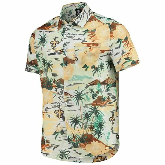 Bring together vacation vibes and your New Orleans Saints spirit by wearing this Paradise Floral button-up shirt from FOCO. Its allover pattern features New Orleans Saints graphics and a tropical print that catches the eye. Plus, the rounded hem creates a more relaxing fit.