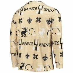 Get in the spirit this season with this set of New Orleans Saints Ugly pajamas from FOCO. Both the top and bottoms are covered in festive, team-inspired graphics – from snowflakes to reindeer to helmets. With soft material, these pajamas are sure to be a nighttime favorite as you rest up before the next New Orleans Saints game.